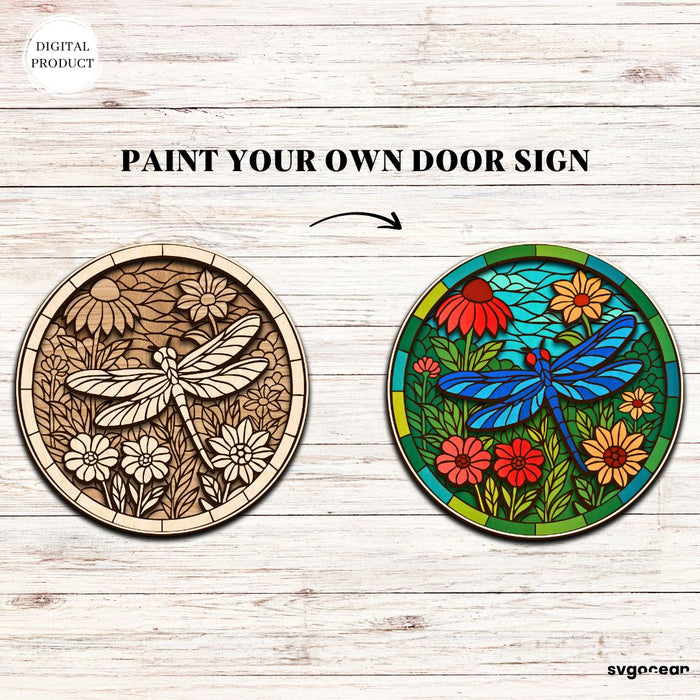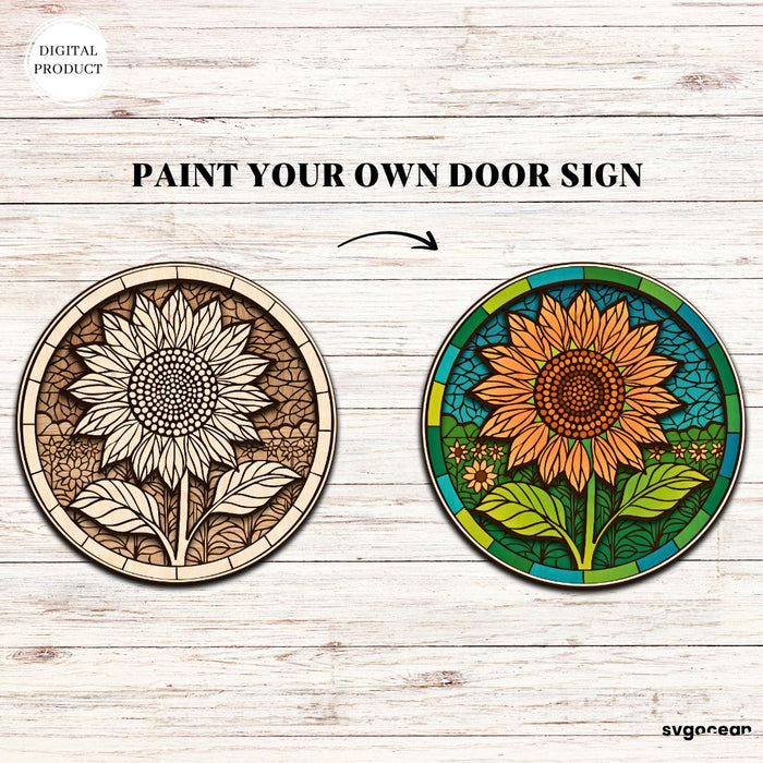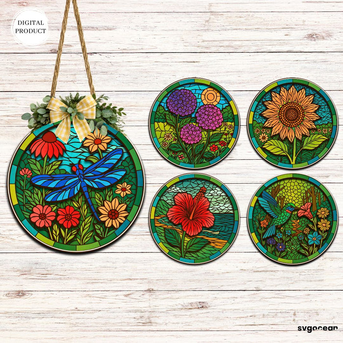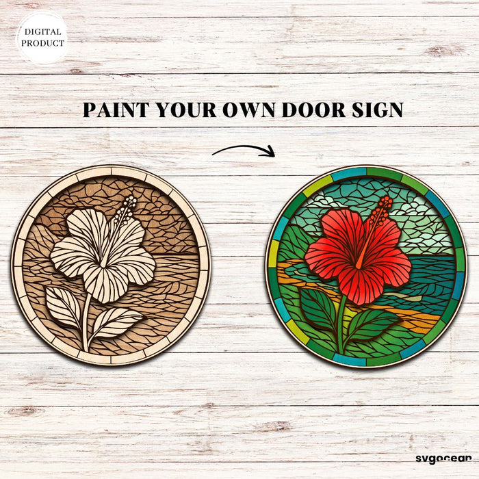 Flower Stained Glass Door Sign Bundle